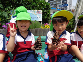 看板のアサガオや葉っぱはみんなで作りましたよ😄